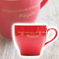 赤色が美しいコーヒーカップは、お名前やメッセージの彫刻が際立ち、美しい仕上がりに。