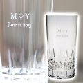 カットの輝きが美しいハイボールグラスにお名前やメッセージを彫刻します。ご主人への結婚記念日ギフトや結婚祝いのプレゼントに大変人気があります。