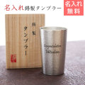 名前やメッセージを彫刻した錫製の名入れタンブラーは、結婚記念日や還暦祝いなどに喜ばれる上質な伝統工芸品です。贈る相手のお名前や、お祝いの言葉などを彫刻することができる上質な名入れ記念品です。専用の木箱入りなので、贈り物に喜んで頂けます。
