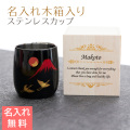 お世話になった方への退職祝いの記念品や特別なプレゼントなどに、名入れ木箱入りのメイド・イン・ツバメステンレスカップを贈りませんか?漆の良さ、金属の良さが引き立てられた上質なカップです。メイド・イン・ツバメのカップを、お名前を入れた木箱に入れてお届けします。木箱には、プレゼントする方のお名前などをお入れすることで特別感がさらにアップします。