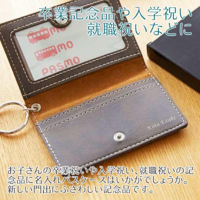 二つ折り レザー調 名入れパスケース Laser